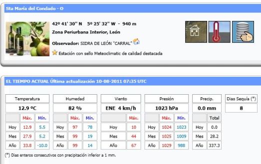 QUE TIEMPO !! CUALQUIERA DIRIA QUE ES VERANO Escrito por wordpress en Noticias 10 agosto, 2011 Datos extraidos de: http://www.meteoclimatic.com/perfil/ESCYL2400000024153a Comparte esto: Compartir en X (Se abre en una ventana nueva) X Comparte en Facebook (Se abre en una ventana nueva) Facebook Me gusta Cargando... Relacionado