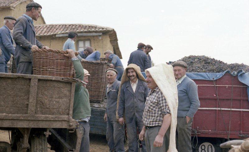 Descargando la uva en un camión.