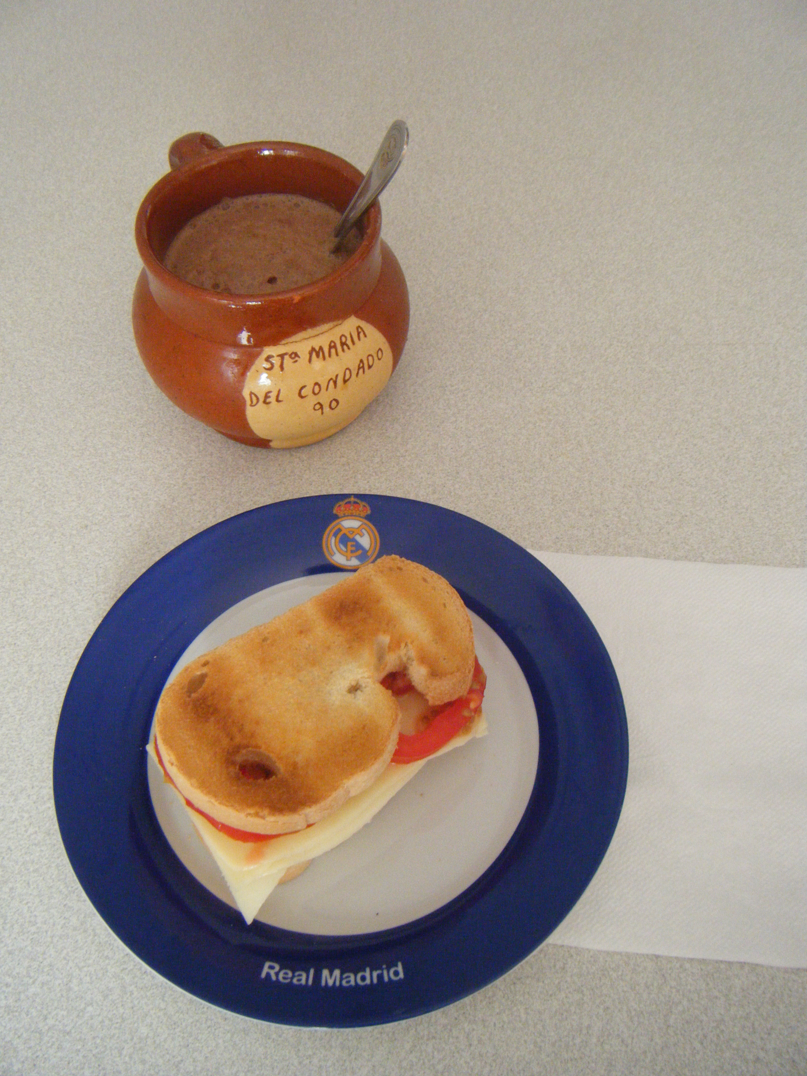 A pesar de que no es la época del madridismo que mas me gusta, lo llevo desde pequeño y hay que estar a las duras y a las maduras. Quiero dedicar esta foto a todos los madridistas del pueblo, pues todas las mañanas desayuno con mi taza de las fiestas y el plato de mi equipo, como dice mi madre "cauno es cauno y tiene sus caunadas". Un saludo y Felices Fiestas!!